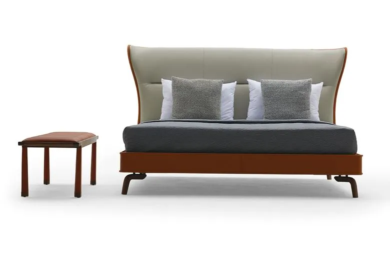 বেড এন্ড বেঞ্চে দৃ as় ছাই কাঠের পা এবং সিট ফ্রেমটি গৃহসজ্জার আসন প্যাড রয়েছে, পা একক সেলাইয়ের সাথে ভুল চামড়া দিয়ে আবৃত করা হয়